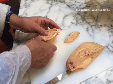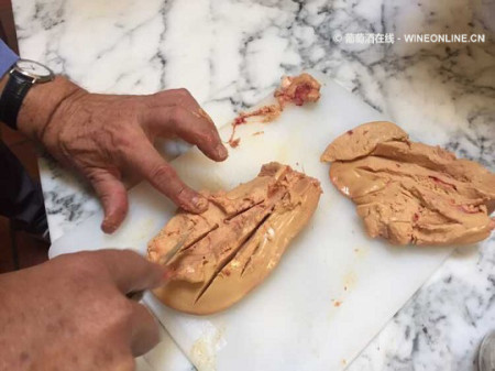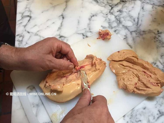 用以上步骤处理一整块鸭肝,一个熟练的员工每小时可处理10kg肝,一年会用掉150,000只鸭。Pierre Dubarry手下有22名专职处理鸭肝的员工。
