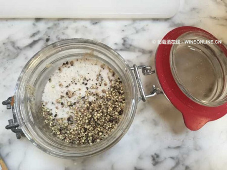 具体步骤:准备好盐、胡椒、酒和空罐