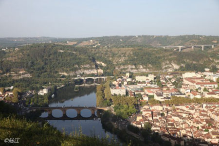 卡奥葡萄酒产区的葡萄园主要分布在卡奥城西侧附近,尤其在环卡奥城区的洛特(Lot)河沿岸等区域。卡奥葡萄酒行业协会的市场总监杰瑞米阿诺(Jeremy Arnaud)带我们到城外制高点,俯瞰全城,能清晰看到环城的洛特河,教堂,石桥,完整的卡奥城区,远处还有云雾覆盖的山脉。一个让人心静的美丽古镇。