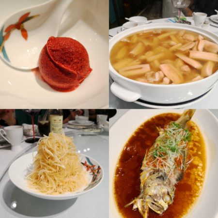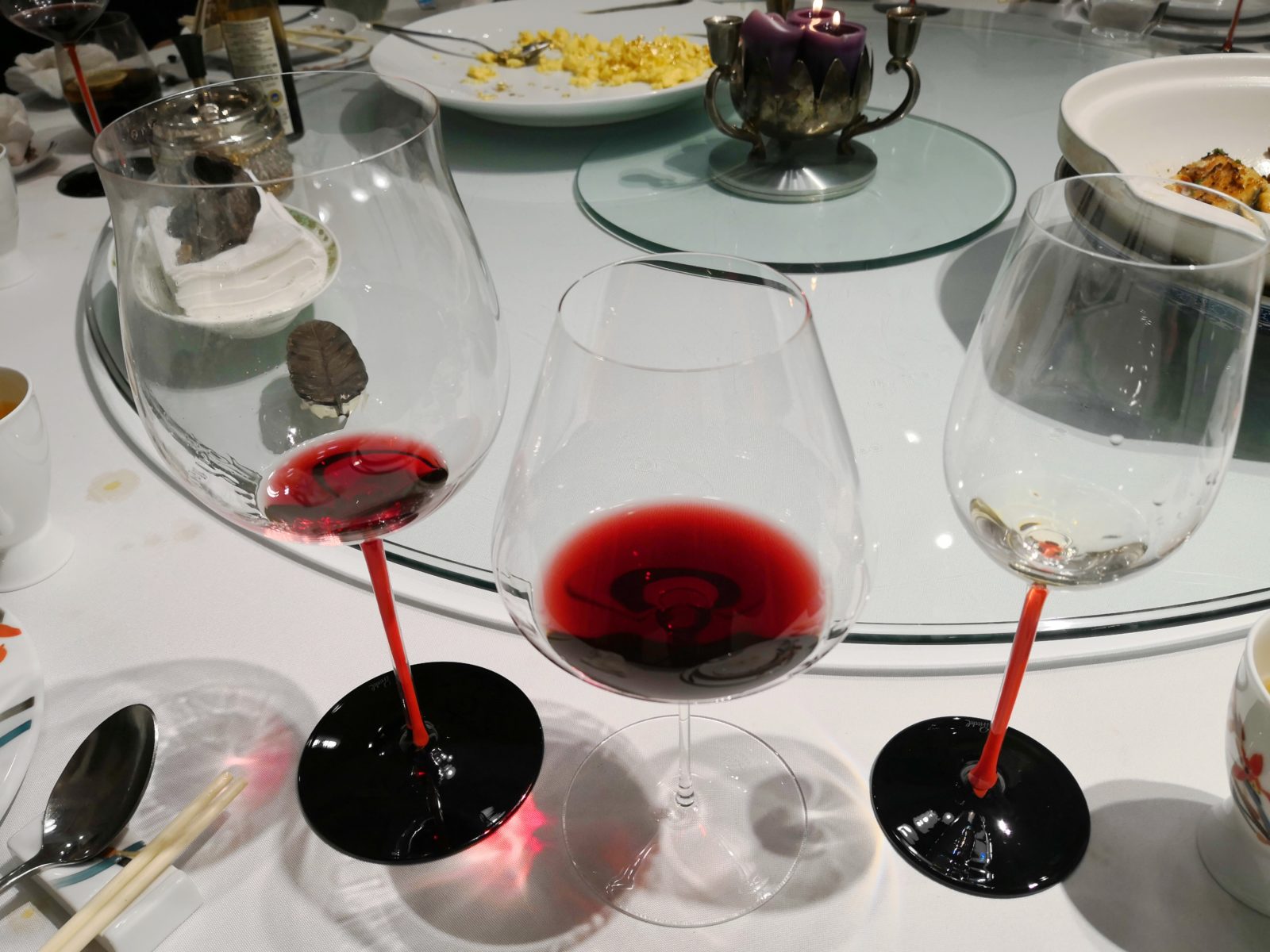 说实话这局是精细上等食材和偏轻浅手法烹饪,适合相对轻浅细腻的酒来相衬。这款干白和油带鱼还可以稍微搭配,第一款中等酒体干红能帮羊肉平衡肥腻口感而且质地相近相容。第二款干红就有点霸气侧漏,这餐里适合直接单饮。