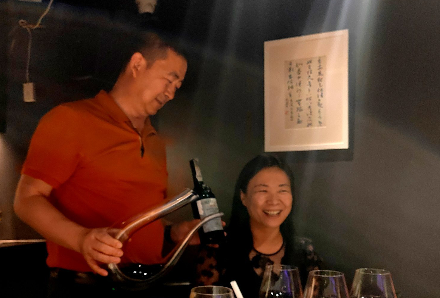 李老师亲自上阵为唐老师侍酒,哈哈!