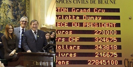 十一月份在勃艮第是相当热闹的月份,一年一度的博纳济贫园拍卖将世界各地的酒商,酒客聚集在博纳这个小村子里。每年拍卖会会邀请名人助阵,拍卖一桶特别的“Piece du President”(主席桶),今年则邀请到了前总统萨科齐夫人卡拉·吕尼 – 萨科齐Carla Bruni-Sarkozy和电影《大鼻子情圣》的男主角扮演者杰拉尔·德帕迪约Gérard Depardieu 助阵。在前总统夫人的燕语莺声之中,布吕尼亲自送酒的承诺,今年的主席拍品—— 350寇东通特级园(Grand Cru Corton, Cuvée Charlotte Dumay)拍出了27万欧元的高价,位列历史第二。拍品筹得的资金将被用于协助残疾儿童接触文化艺术的卡拉·布吕尼萨科齐基金会(la fondation Carla Bruni-Sarkozy以及旨在帮助患有癫痫症的青年的灵感基金会Institut des Epilepsies de l’Enfant et l’Adolescent