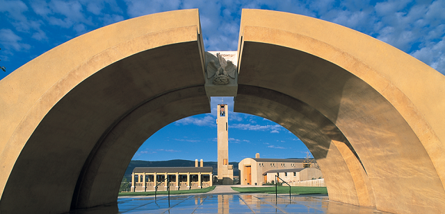 Mission HIll酒庄已成为当地地标性建筑,位于加拿大不列颠哥伦比亚省的Okanagan峡谷,Boucherie山区,拥有葡萄园和酿酒厂,占地900公顷。建筑历史可追溯到1981年,1996年由OSKAA建筑所受托重新设计改造而成。2002年项目最终完工,耗费加币3500万。整个建筑的核心是一座12层85英尺高的塔楼,楼上悬着四口钟,由法国安纳西(Annecy)著名的铸钟作坊 Fonderie Paccard铸造。