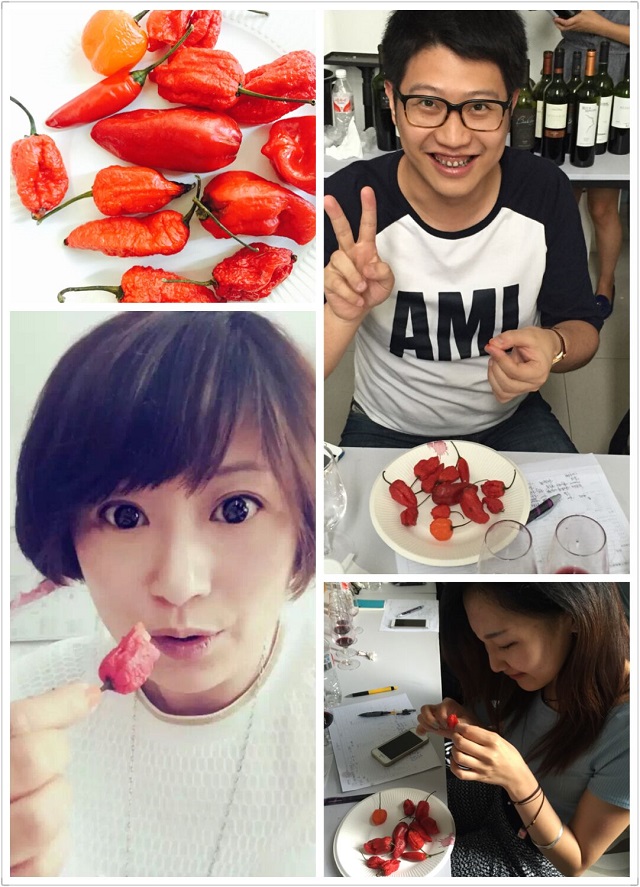 We constantly hold the pepper tasting on the principal of pursuing excitement and challenge in life and at the aim of taking out those who claim that they are unbeatable in front of pepper. It’s the most joyful moment of all three parts. In the very first beginning, participants behaved modestly and declined to eat the pepper. But after our pioneer Wu Ying tasteed the pepper “Bird’s eye” and “Scorpion” from the bottom to the top, participants began to follow suit, identifying the hot degree and burning area the pepper brings. Some people even dared to taste the seeds. Mr.Lu look at all participants with a sense of satisfaction because he finally finds the pepper that makes us surrender and he claims proudly that whoever eats a whole pepper will have free charge of participation for two times. How evil!!