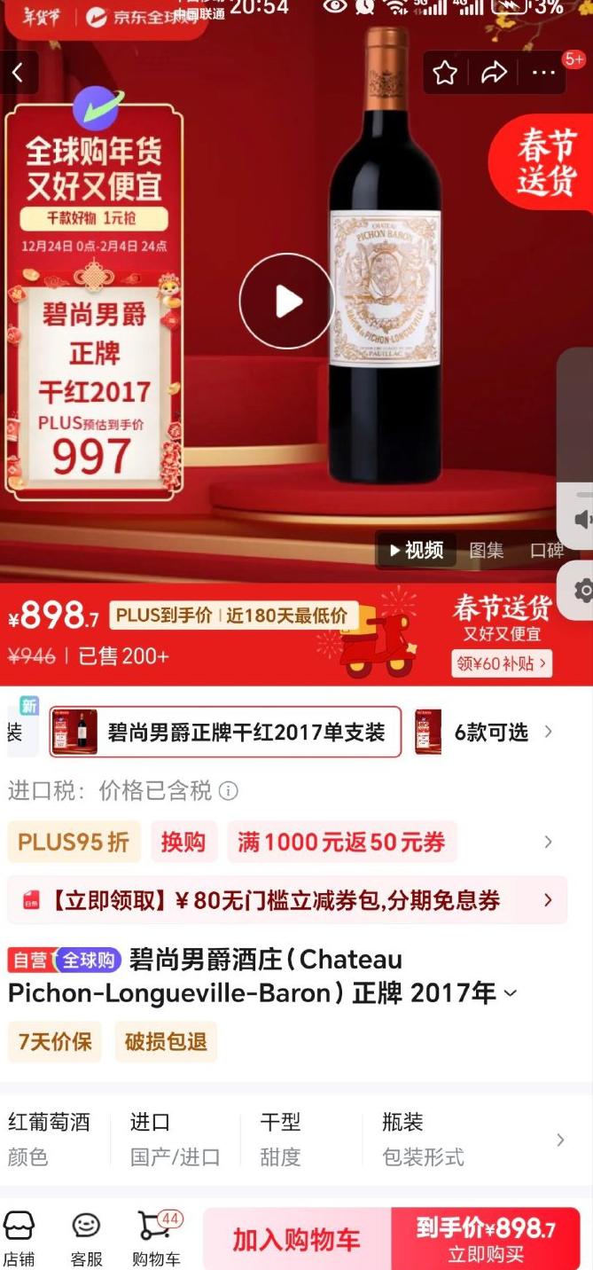 刚在京东买鸡,结果给我推送了几个波尔多列级庄和香槟,大部分是京东全球购跨境电商,性价比已经让水货没有存在的意义。